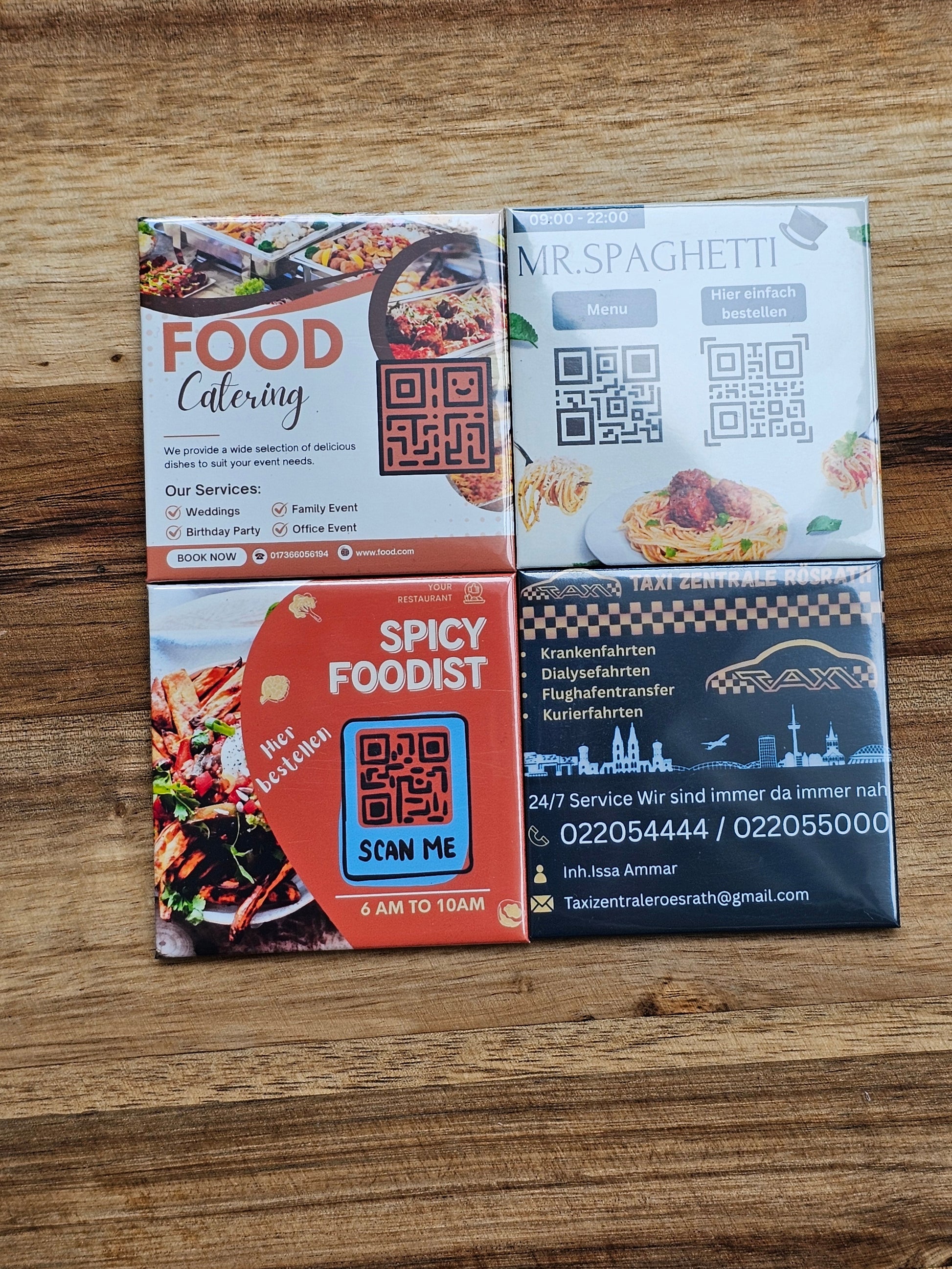 Mit unseren individuell gestaltbaren Werbemagneten platzierst du deine Marke genau da, wo sie auffällt – im Alltag deiner Kunden. Ob Restaurant, Taxiunternehmen, Friseursalon oder Handwerksbetrieb: Deine Kontaktdaten, QR-Codes oder Angebote sind immer griffbereit – direkt im Blick.